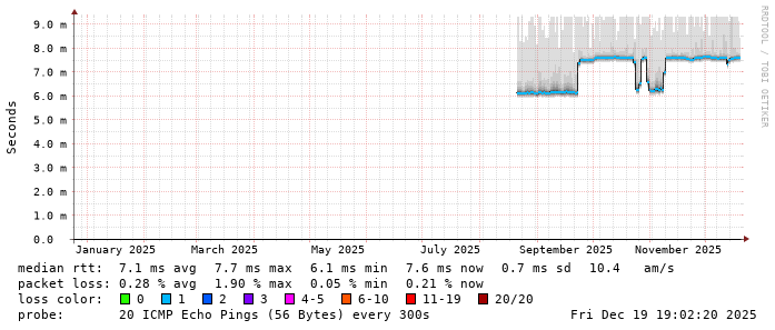 Ping to belnet01.ring.nlnog.net - BE - IPV4 - AS2611